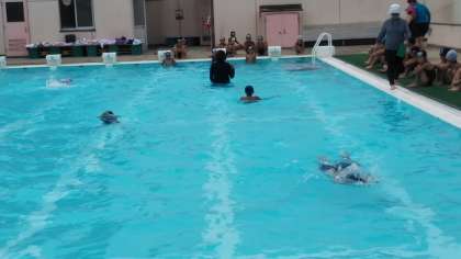 授業後半は、記録会をしましたが、、3年生は、10人以上4年生は20人以上が25mを泳ぎきりました。