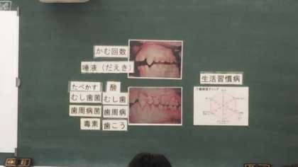 授業の前半部分は、歯との健康についていろいろ教えていただきました。