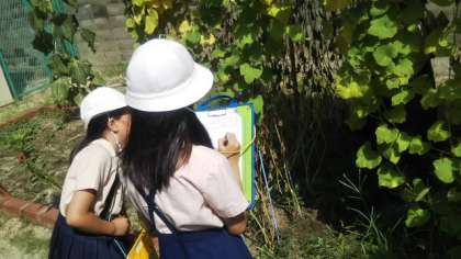 4年生が、理科の学習でへちまの観察をしていました。