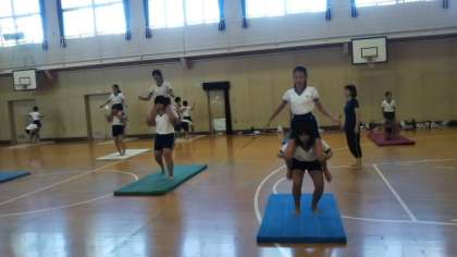 4時間目、6年生が組体操の2人組、3人組の練習をしていました。