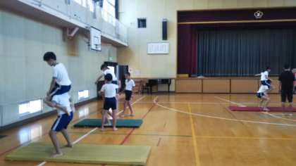 安全に気をつけて、なかまで「離すよ」「下りるよ」具体的に声を掛け合いながら、技を習得していました。