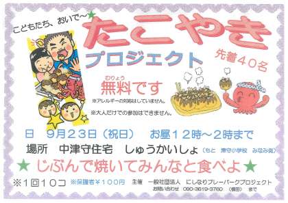先着40名で、津守地域で、たこやきプロジェクトがあるそうです。