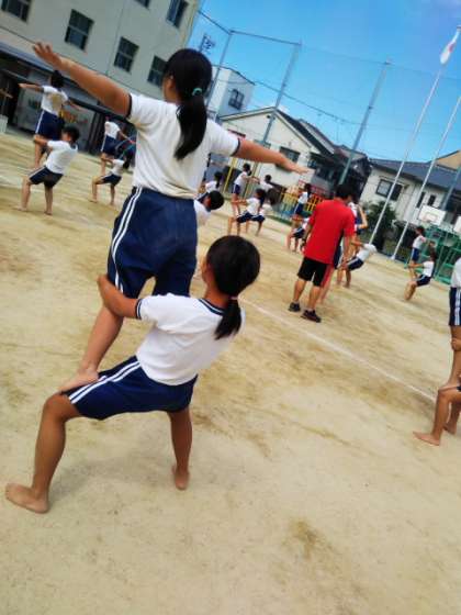 高学年の組体操もかなり仕上がってきました。サボテンと倒立がなかなかむずかしいのです。