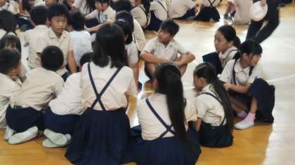 第3問 1.みんなが持っている。 2.背負って使う。 3.教室のうしろにある。