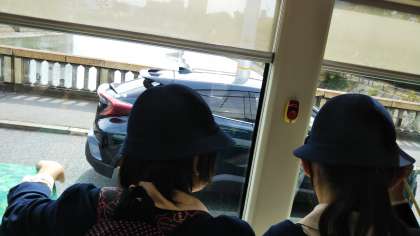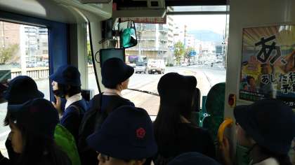 広島駅から2両連結の路面電車でお好み焼き村のある八丁堀に向かいます