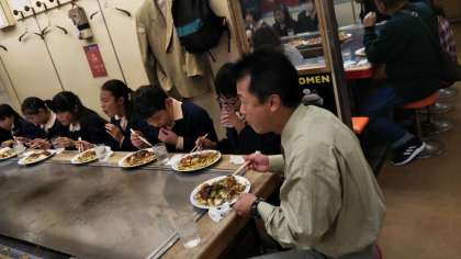 大阪のお好み焼きとは、少し違う、広島焼きを食べます。