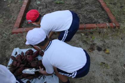 みんな笑顔で、出てくる大きなさつまいもを掘り出しました。