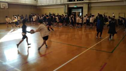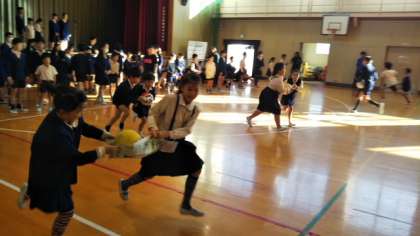 歩幅もちがい、ボールも落としてしまいそうなので、チームワークも必要です。
