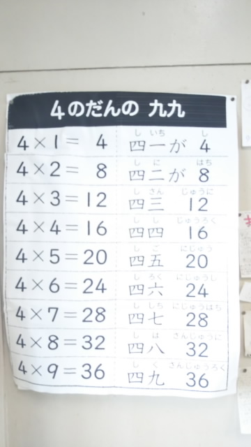 教室には、九九の表が掲示してあります。