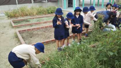 学習園には、雑草が生い茂っていましたが、子どもたちはしっかり協力して、ほとんどを抜くことができました。