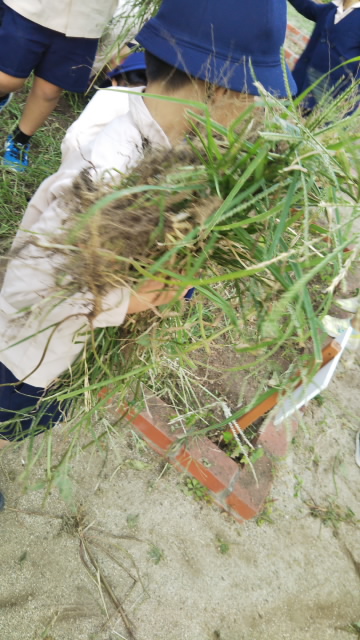 根が深いものや大きく背が高く育ったものもありましたが、たくましくどんどん抜いていきました。いっぱい抜いて満足して楽しかったそうです。