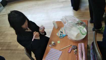 友だちといっしょに作ったり、つくりかたを先生に相談したりして作ることを楽しんでいました。