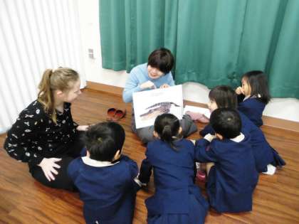 6名程度の子どもたちに対して2名の先生方。ネイティヴスピーカーの