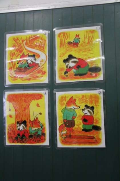 「人物を考えて書こう」で絵の中の人物(この場合たぬきときつね)は、どんな人物かを考えて「人物メモ」を作りました。