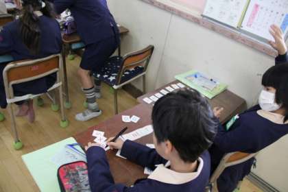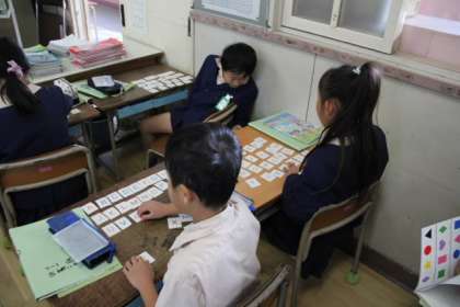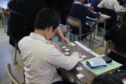梅南中学の英語科の先生に毎週来ていただいて、英語活動の授業をしていただいています。今日は、アルファベットの学習でした。