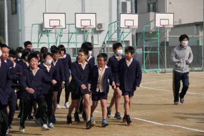 今日から、耐寒かけあしが始まりました。児童会で、「元気にランニンGOOD!(元気にランニングー!)」というネーミングがつけられました。