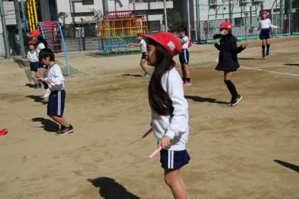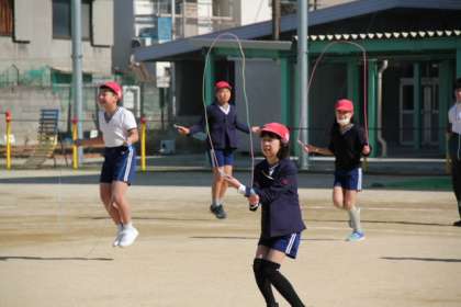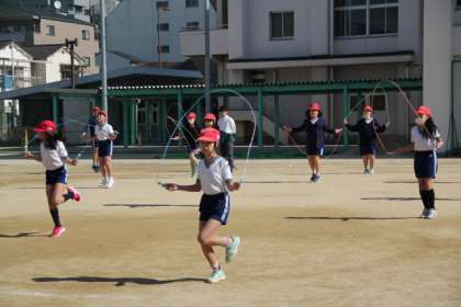 短なわをしています。1年生から練習をしてきているので、二重とびやはやぶさに挑戦している子もいます。