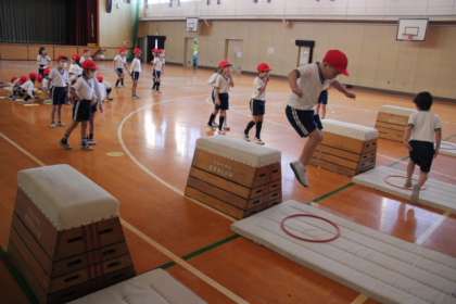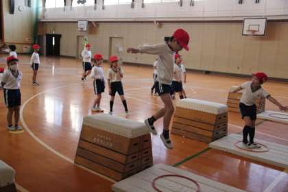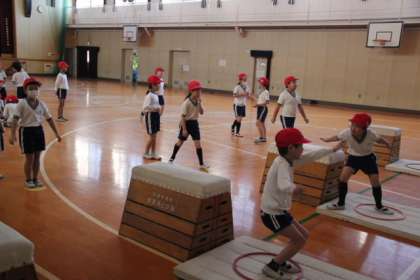 昨日は、手や腕で体を支える遊びをしたり、とびばこの準備の仕方を学習しました。