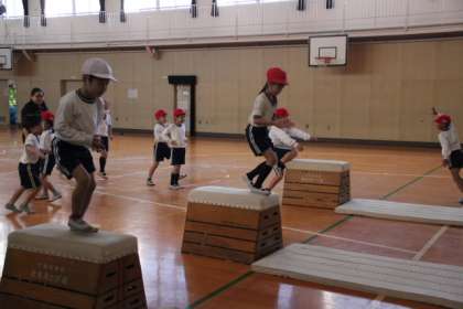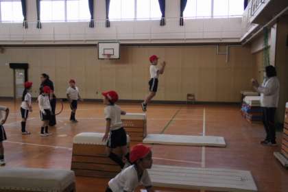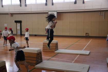 今度は、ジャンプしてから、着地までにできるだけたくさん拍手をします。