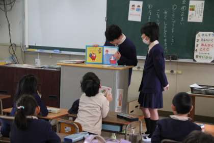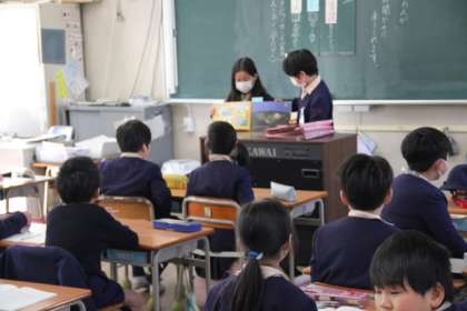 今朝の読書は、図書委員会の児童による「読み聞かせ」です。図書委員会の児童が、各教室を訪問して「読み聞かせ」してくれました。写真は、上から1−1、2−1、2−2です。