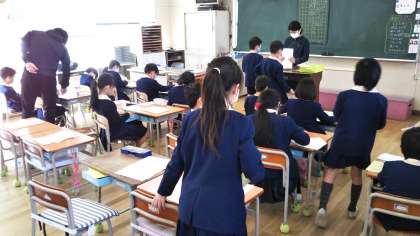 いつもは講堂でみんなが集まってしますが、明日は放送で行います。
