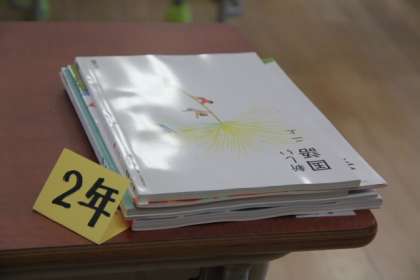 写真は、お渡しする教科書すべての写真です。A4の封筒に入ったお手紙や学習課題があります。かばんや大き目の紙袋をご持参ください。