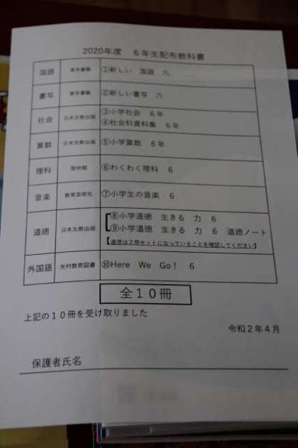 2.教科書を一覧表で確認し、一覧表に記名し、捺印をお願いします。