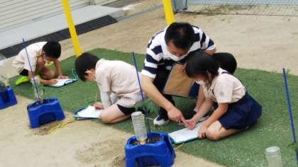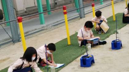 2年生が、生活科で植えたミニトマトのスケッチをしました。
