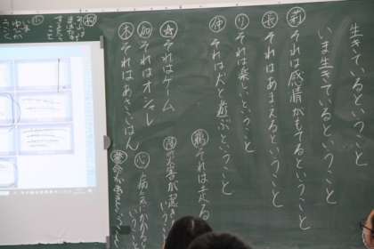 タブレットでそれぞれの子どもたちの「生きること」を集めて、当てはめてみんなで読みました。素敵な詩になっていました。