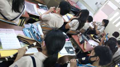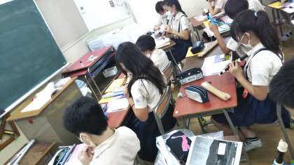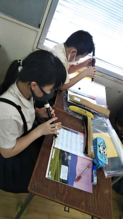 久しぶりのリコーダーです。とはいっても、感染拡大防止のため音を出して演奏することはできません。階名に合わせて指づかいの練習をしました。
