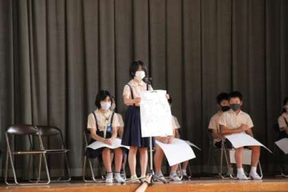 それぞれの代表が、「楽しい学校にします。」「みんなをリードして明るいいい学校にします。」と発表しました。