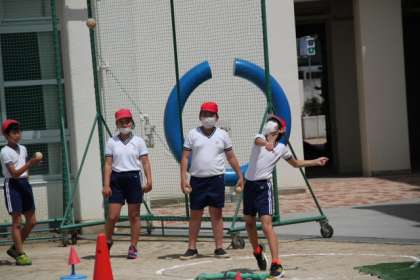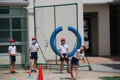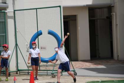 できるだけ、上の角度をめざして投げるように工夫していました。(45度でしょうか?)