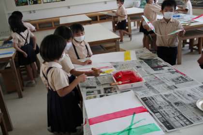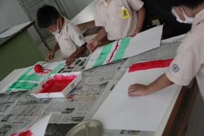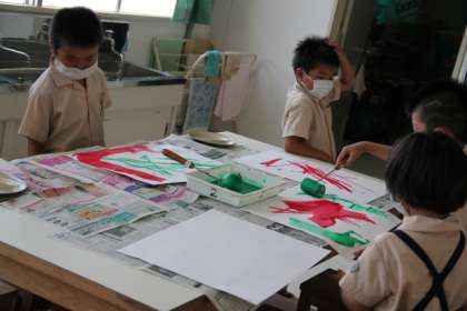 先週、描いたシャボン玉の背景をローラーで描きます。