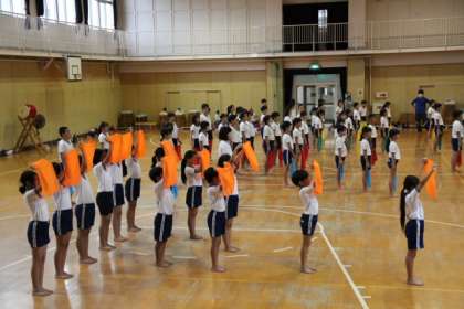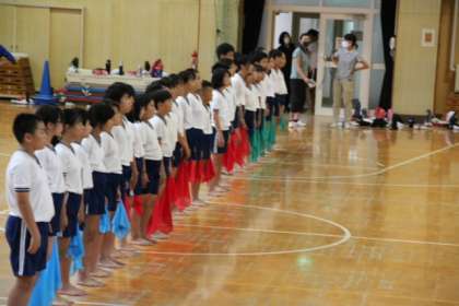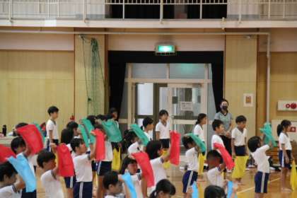 フィナーレは、カラフルな布を持ち、一文字を作ります。
