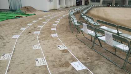 明日は、快晴ではないようですが、運動場の保護者席は、長椅子約100人、立見席150人分ありますが、日よけがありませんので、帽子などを必要に応じてご用意ください。