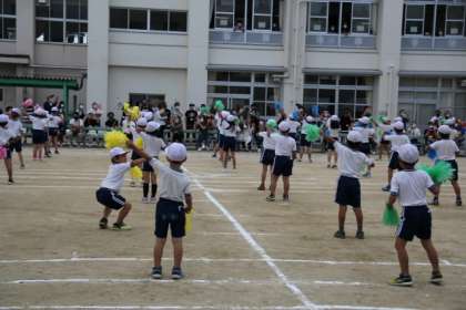 1,2年生の「ぼくらのパワーでふきとばせ!」です。
