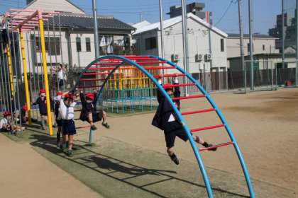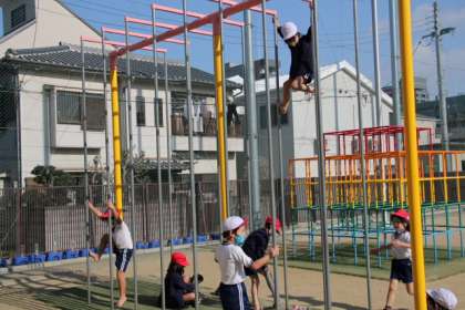 のぼりぼうやてつぼう、うんていをしたり、なわとびをしています。