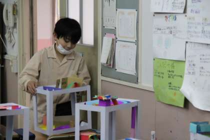 4−1の図工で「コロコロガーレ」が完成し、それぞれがお試し会をしていました。