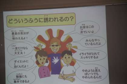 巧妙な誘い方で違法な薬物を勧められて、興味本位で使うと、体、特に脳に深刻な害を与えることになることや様々な心の害が知らないうちに起きてしまうことを学びました。