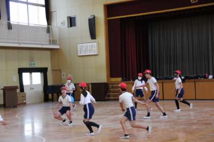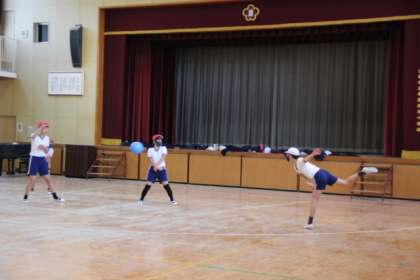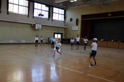 寒い体育館でしたが、オニごっごで体をあたためた後は、ボールを2個使ってドッジボールをしていました。