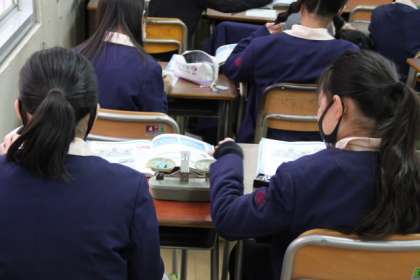 上皿てんびんは、おもりをてでさわると重さが変わってしまうので、ピンセットでおもりを扱います。