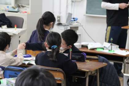磁石のN極、S極はそれぞれ北と南を指すはずですが、たまにうまくいかない時があるようです。とがった鉛筆を立て、U字型の磁石をおくとやはり北と南の方角を示しました。