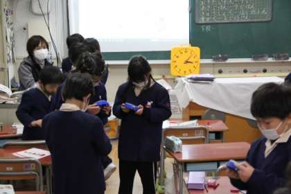 算数用の時計を操作しながら考えたり、友だちに問題を出したりできるのです。