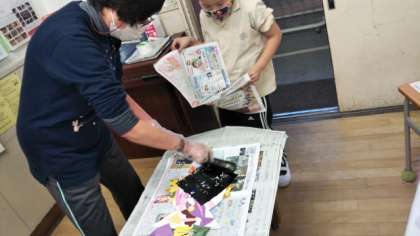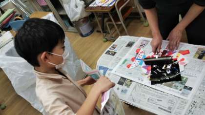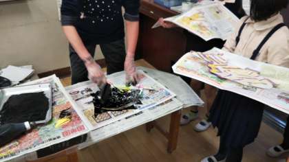 ローラーでインクを塗ってもらって、いよいよ印刷です。