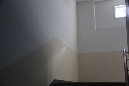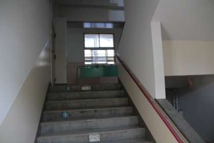 2年生、3年生の教室の横の1号階段の塗装工事が終了しました。
