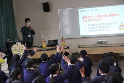はじめに、選挙に関するクイズで子どもたちの選挙に関する知識を確認しました。