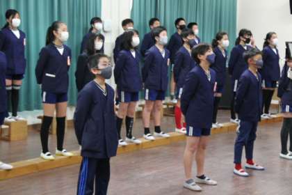 6年生が3日の卒業おめでとう集会の練習をしています。