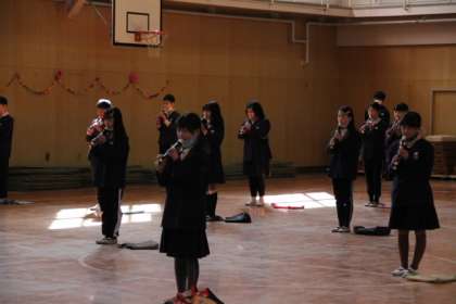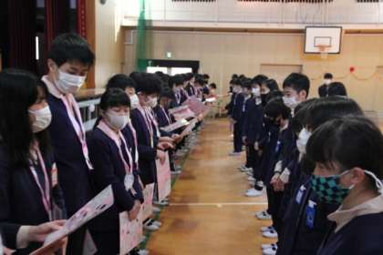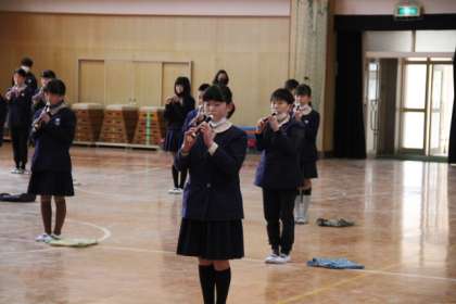 5年生は、たてわり班のメッセージカードを1年から5年の代表として、卒業生一人一人にプレゼントしました。よびかけと「威風堂々」のリコーダー演奏もプレゼントしました。さすが在校生代表で、素晴らしい演奏でした。
