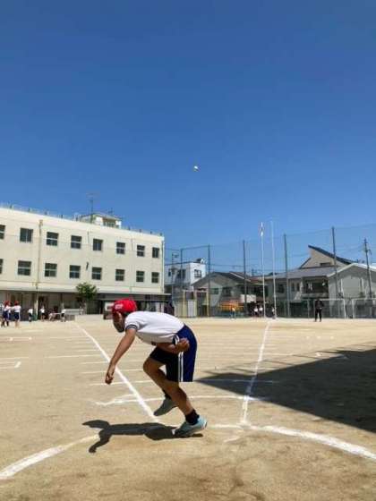 今日から順番に全学年でソフトボール投げを実施していきます。緊急事態宣言により短縮授業が続いていたため延期していましたが、暑い中でもがんばっています。昨年の記録より伸びていることを願っています。