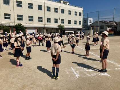 今朝はたてわり班の児童集会がありました。たてわり集会はAグループとBグループに分けて、当面の間は分散して行います。今日はAグループで、初めての顔合わせなので自己紹介とリーダーとのじゃんけんをして過ごしました。